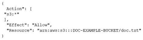 A developer is creating an application for a company. The application needs to read the file doc.txt that is placed in the folder of an Amazon S3 bucket that is named DOC-EXAMPLE-BUCKET. The company's security team requires the principle of least privilege to be applied to the application's IAM policy.