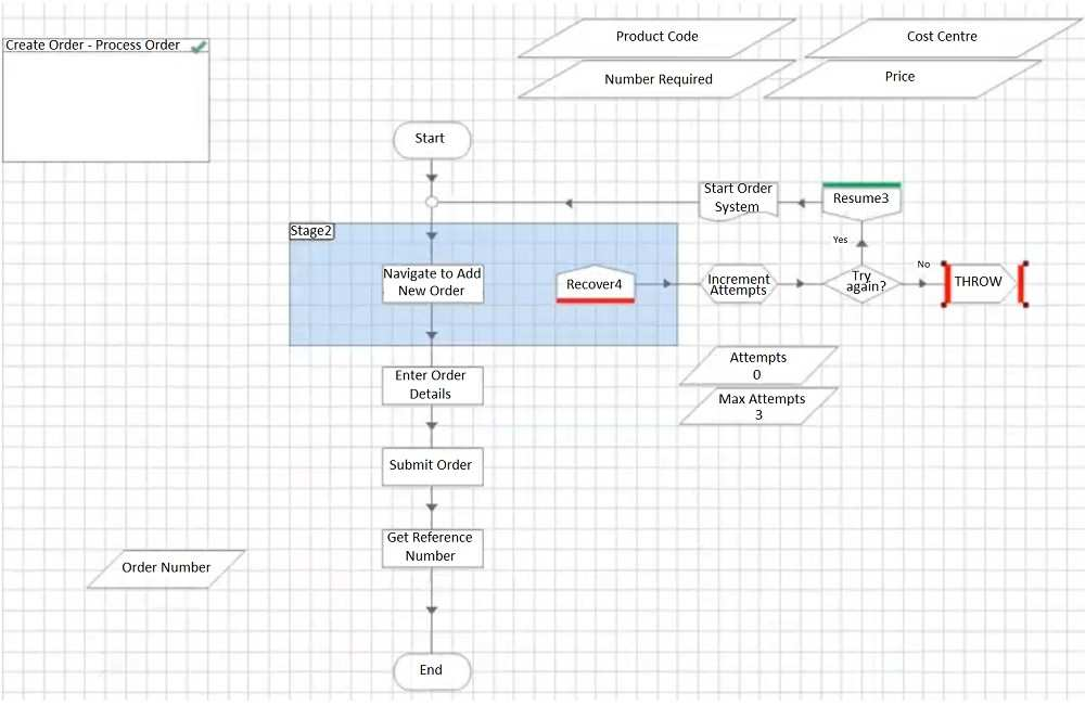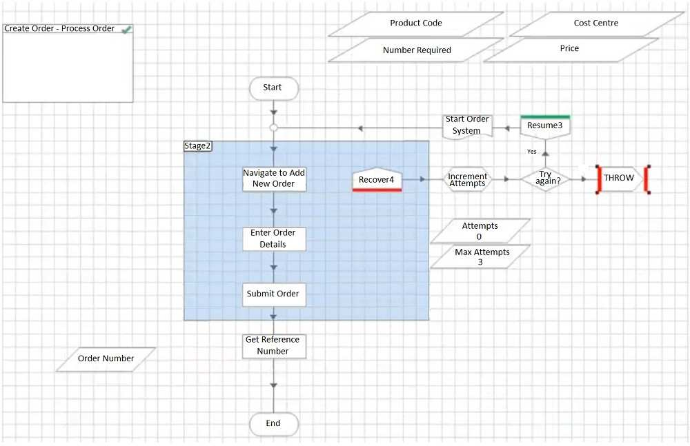 • Navigate to New Order – The application is navigated to a new order screen. There is a wait stage to confirm the navigation is successful – if this wait stage
