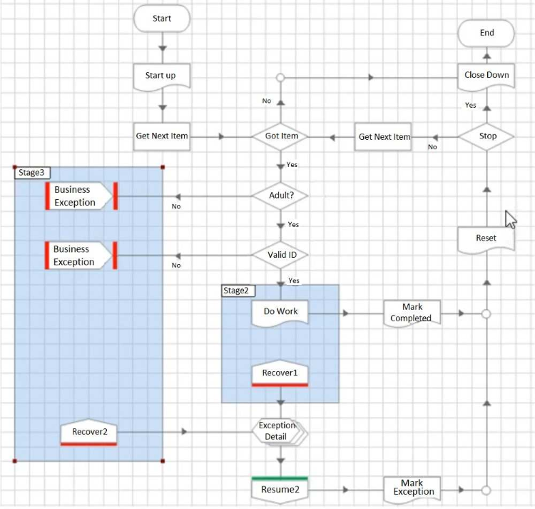 based on the exception detail Blue Prism has captured. The following Process configuration has been built as a solution.
