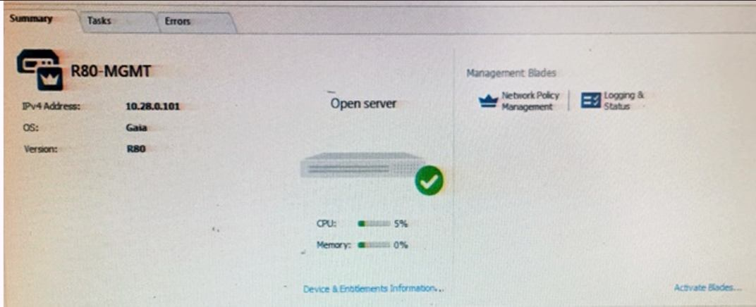 Tina is a new administrator who is currently reviewing the new Check Point R80 Management console interface. In the Gateways view, she is reviewing the Summary screen as in the screenshot below. What as an 'Open Server'?