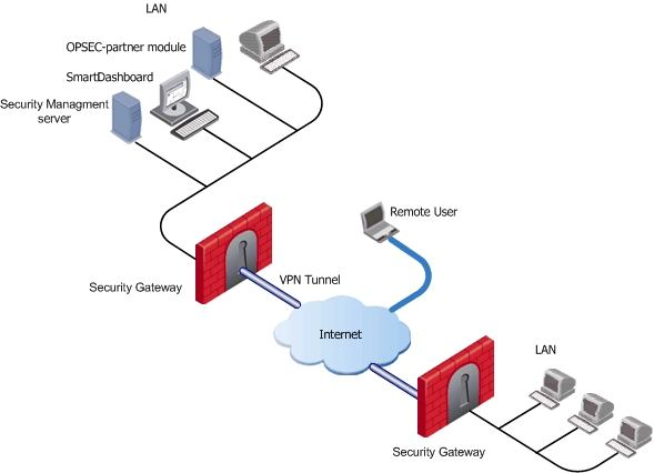 There can be other OPSEC-partner modules (for example, an Anti-Virus Server) to complete the network security with the Security Management server and its Security Gateways.