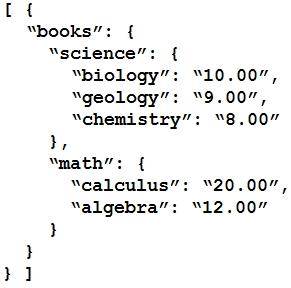 Refer to the exhibit. Which JSON is equivalent to the XML-encoded data?