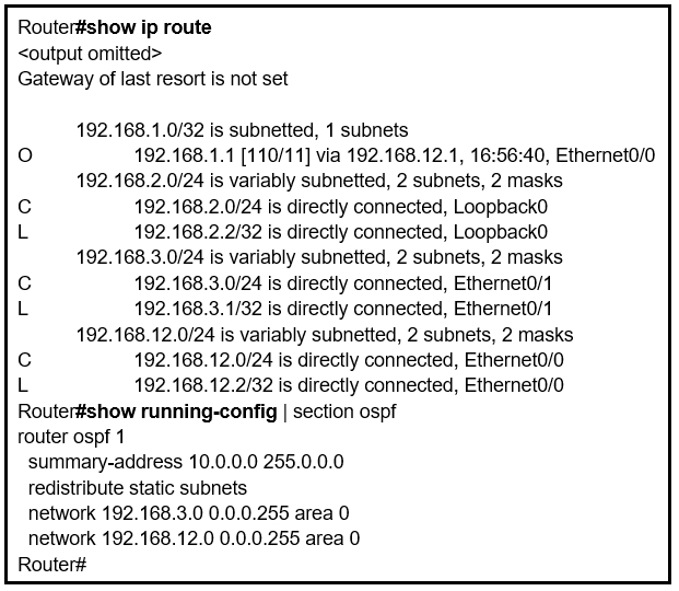 4. The summary route is not visible on this router, but it is visible on other OSPF routers in the same area.