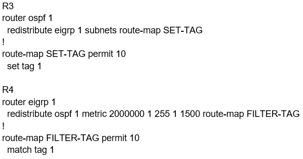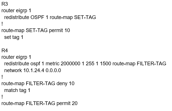 4. Add this statement to the route map: route-map RM-OSPF-DL deny 20.