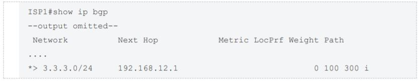 By default BGP advertises all prefixes to external BGP neighbors. This means that if you are multihomed (connected to two or more ISPs) then you might become a transit AS. For example, ISP 2 in AS 200 can send traffic to your router in AS 100 to reach ISP 3 in AS 300 because you advertised prefixes in ISP 3 to ISP 2. This is what will be seen in the BGP routing table of ISP1:   In order to prevent this we have to ensure that your router only advertises prefixes from its own autonomous system. One of the method to solve this problem is using Filter-list with AS-PATH access-list:   R1(config)# ip as-path access-list 1 permit ^$ R1(config-router)#neighbor 192.168.12.2 filter-list 1 out R1(config-router)#neighbor 192.168.23.3 filter-list 1 out It ensures that we will only advertise prefixes from our own AS. The ^$ regular expression ensures that we will only advertise locally originated prefixes. We should apply this filter to both ISPs.
