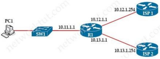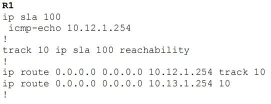 Refer to the exhibit. An engineer is monitoring reachability of the configured default routes to ISP1 and ISP2. The default route from ISP1 is preferred if available. How is this issue resolved?