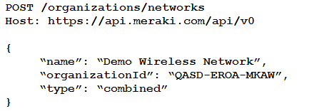 NOTE: The options are fundamentally wrong. The answer is correct. It should be api.meraki.com/api/v0/organizations/