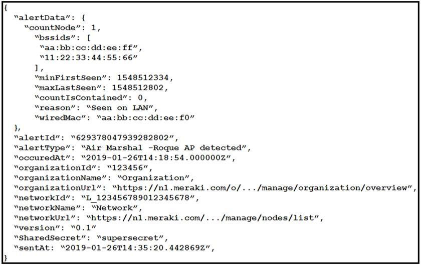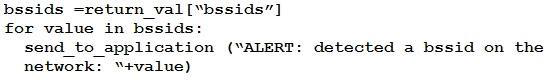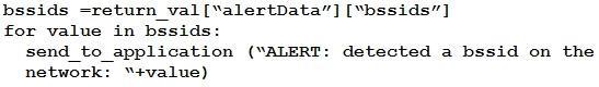 Explanation: ExplanationFor number in range value is required for the application to send the alert. Bssids are also included.
