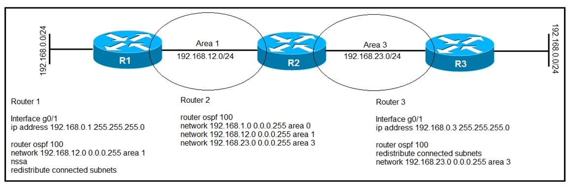 Refer to the exhibit. After troubleshooting an OSPF adjacency issue, routers 1, 2, and 3 have formed OSPF neighbor relationships. Which statement about the configuration is true?