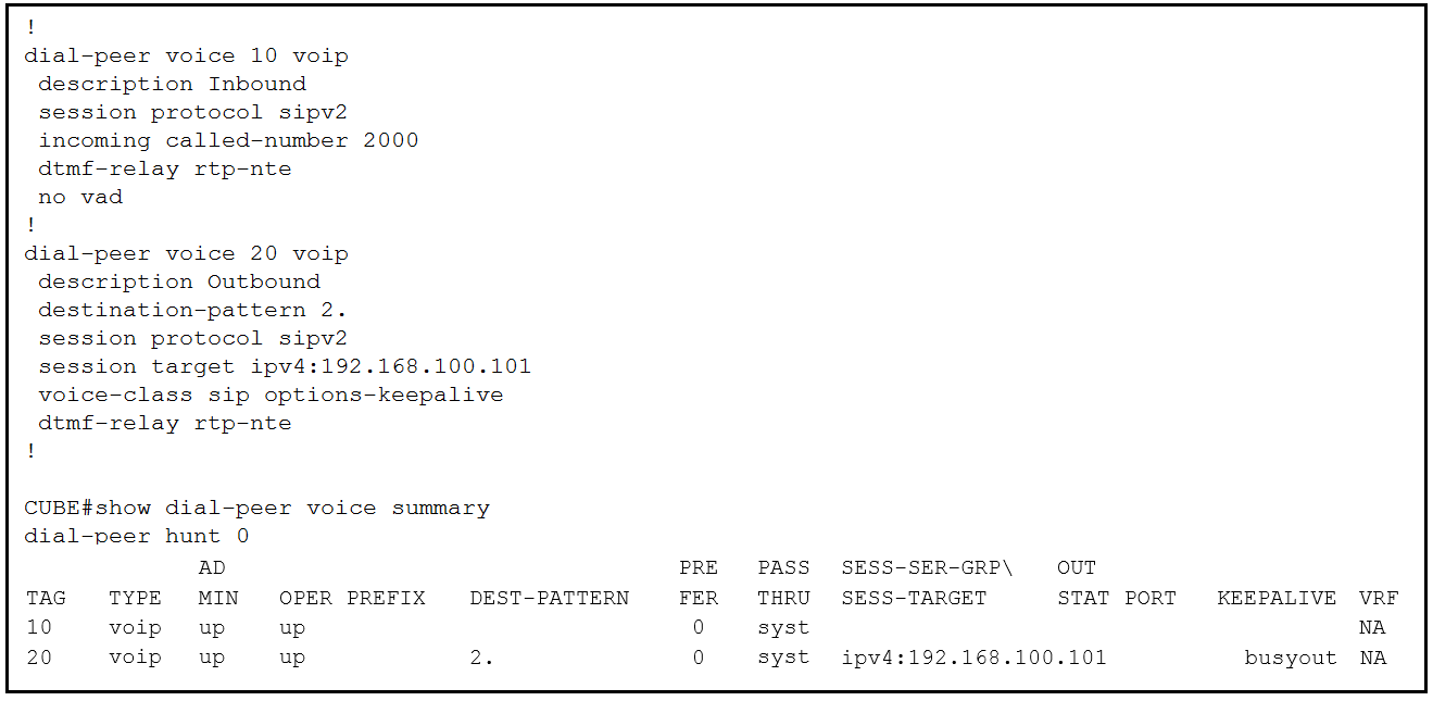 2. dial-peer voice 20 voip