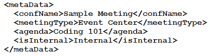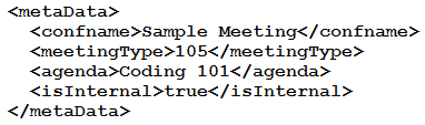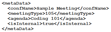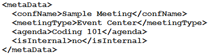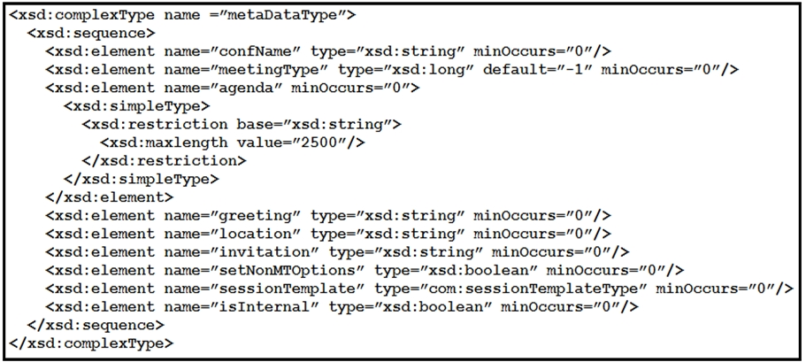 Refer to the exhibit. Based on this Webex Meetings XML API schema snippet, which XML object is a valid <metaData> element?