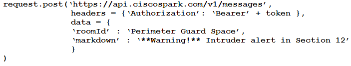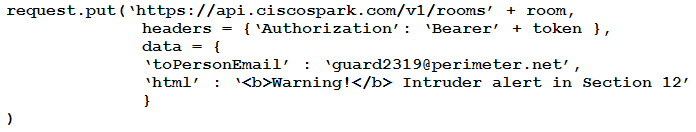 Refer to the exhibit. The code includes the beginning of a short Python script that is constructed to notify the guard in case of an intruder alert. Which code snippet completes the script?
