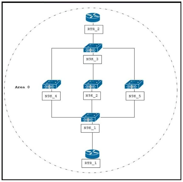 Refer to the exhibit. An engineer must upgrade the N9K_2 device to the latest code. In preparation for the upgrade, the engineer wants to divert all data plane traffic between RTR_1 and RTR_2 to N9K_4 and N9K_5. The traffic redirection must happen without forcing any OSPFv2 adjacency change in the network. Which configuration set must be used on N9K_2 OSPF process 1 to accomplish these goals?