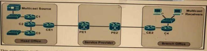 5. The service provider must provide a Draft Rosen solution to enable a GRE tunnel between nodesPE1 and PE2