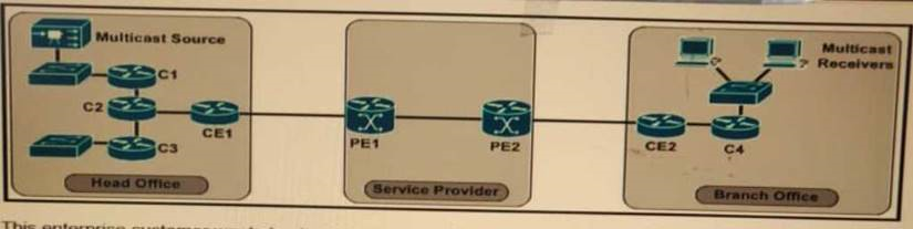 The enterprise customer wants to stream one-way video from their head office to eight branch offices using multicast. Their current service provider provides a Layer3 VPN solution and manages the CE routers, but they do not currently support multicast. Which solution quickly allows this multicast traffic to go through while allowing for future scalability?