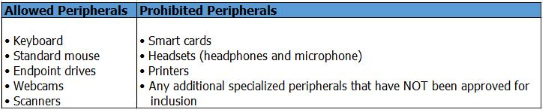 Scenario: After a recent security assessment, a Citrix Architect recommends blocking unnecessary peripheral types by disabling the associated HDX channels. Currently, the environment is intended to support the peripheral types listed in the Exhibit.