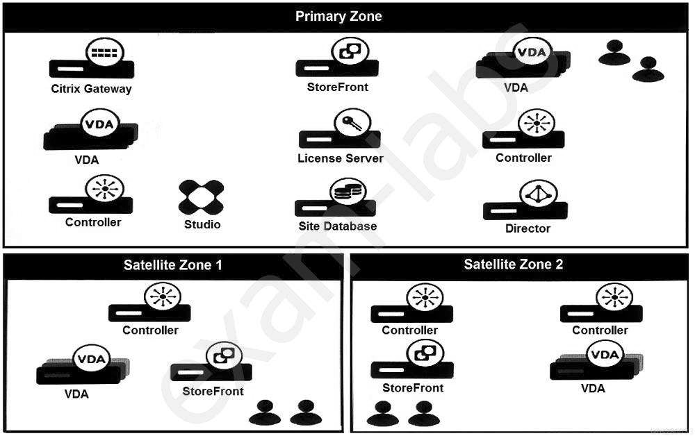 Scenario: A Citrix Architect needs to assess a Citrix Virtual Apps and Desktops environment. The Citrix Virtual Apps and Desktops diagram in the exhibit gives details about the current Site and zone design.