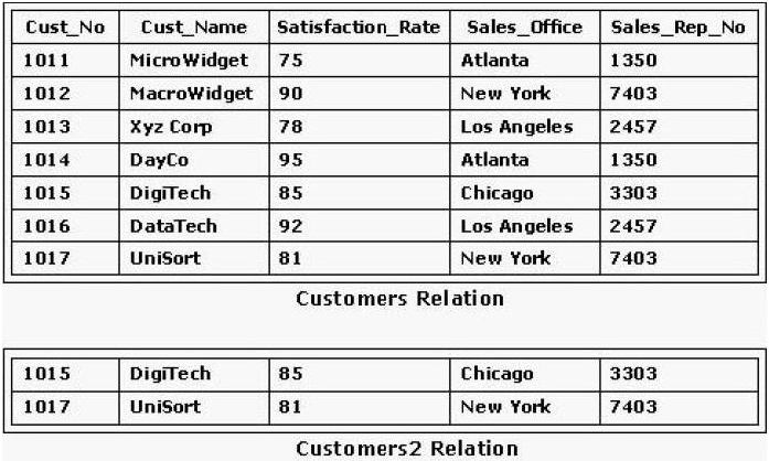 Consider the following relations shown in the exhibit. Which of the following SQL statements would return the Customers2 relation from the Customers relation?
