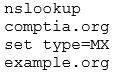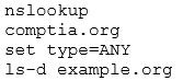 A security analyst is testing both Windows and Linux systems for unauthorized DNS zone transfers within a LAN on comptia.org from example.org. Which of the following commands should the security analyst use? (Select two.)