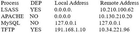 Given the above information, which of the following processes was MOST likely exploited via a remote buffer overflow attack?