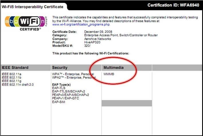 The Wi-Fi Multimedia (WMM) certification, which is illustrated in the exhibit, pertains to which topic?