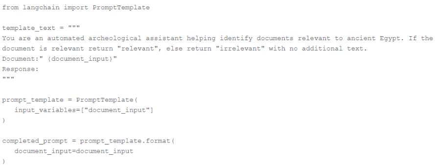 A Generative AI Engineer is using LangChain to assist a museum in classifying documents and using this code: