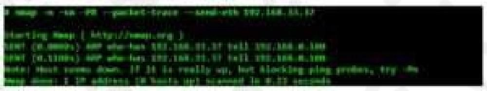 In example b, neither the -PR option nor the -send-eth option has any effect. This is often because ARP has a default scan type on the Area Ethernet network when scanning Ethernet hosts that Nmap discovers. This includes traditional wired Ethernet as 802.11 wireless networks. As mentioned above, ARP scanning is not only more efficient, but also more accurate. Hosts frequently block IP-based ping packets, but usually cannot block ARP requests or responses and communicate over the network.Nmap uses ARP instead of all targets on equivalent targets, even if different ping types (such as -PE and -PS) are specified. LAN.. If you do not need to attempt an ARP scan at all, specify  send-ip as shown in Example a "Raw IP Ping Scan for Offline Targets".