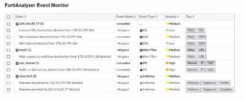 The search displayed here appears to be in a structured format, which implies it might be utilizing filters rather than a free-text search. FortiAnalyzer allows both structured searches and text searches, but there's no indication here that text mode was used.
