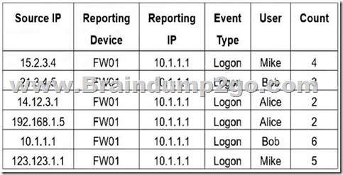 If you group the events by User and Count attributes, how many results will FortiSIEM display?