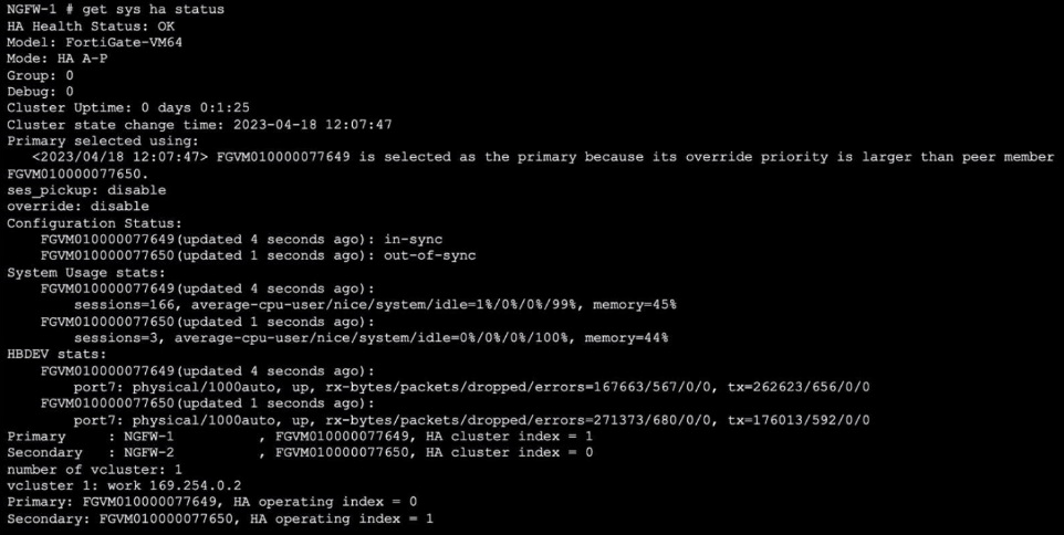 1. If a configuration change is made to the primary FortiGate at this time, the secondary will initiate a synchronization reset.