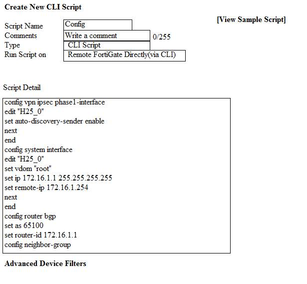 4. FortiManager provides a preview of CLI commands before executing this script on a managed FortiGate.