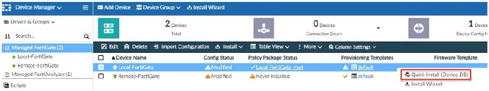 3. FortiManager automatically installs the configuration difference in revisions on the managed FortiGate.
