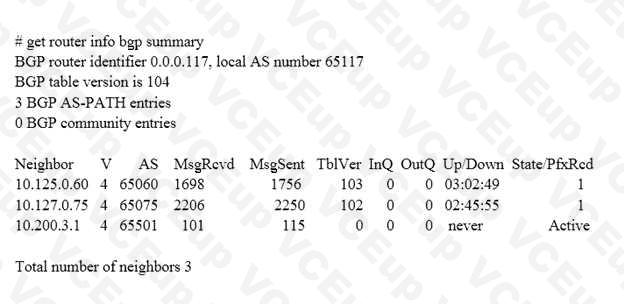 Examine the output of the `get router info bgp summary' command shown in the exhibit; then answer the question below.