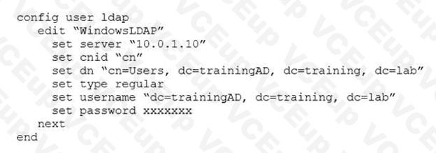 A FortiGate device has the following LDAP configuration: