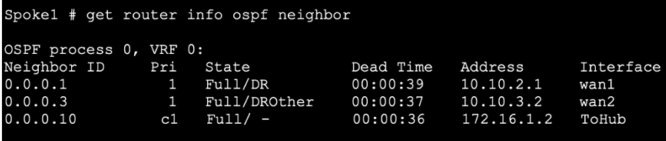 Refer to the exhibit, which shows the output of get router info ospf neighbor.