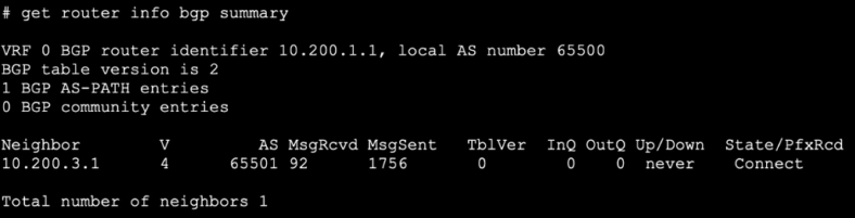 1. The local router initiated the BGP session to 10.200.3.1 but did not receive a response.