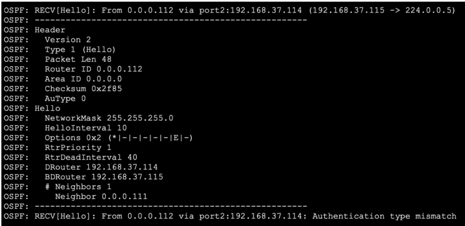 Refer to the exhibit, which shows the omitted output of a real-time OSPF debug.