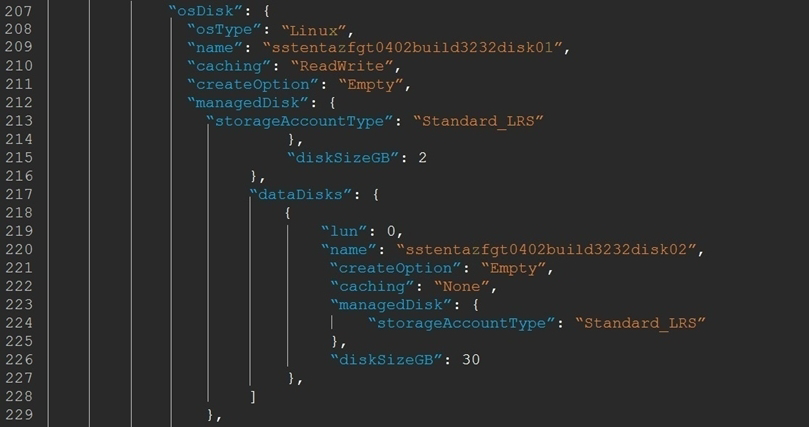 You attempted to deploy the FortiGate-VM in Microsoft Azure with the JSON template, and it failed to boot up. The exhibit shows an excerpt from the JSON template.