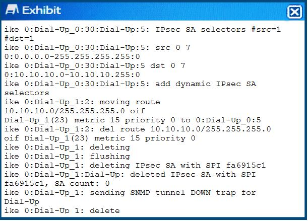 However, FortiGates A and B have problems connecting to the VPN. Only one of them can be connected at a time. If site B tries to connect white site A is connected, site A is disconnected. The IKE real time debug shows the output in the exhibit when site A is disconnected.