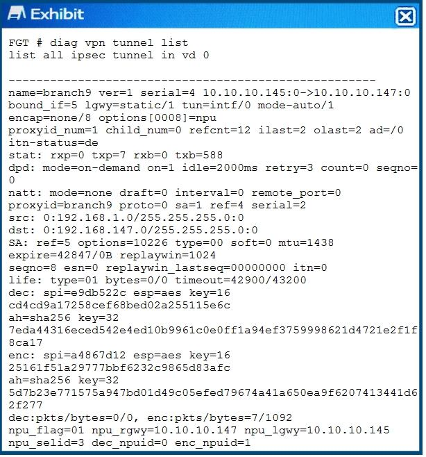 You configured an IPsec tunnel to a branch office. Now you want to make sure that the encryption of the tunnel is offloaded to hardware.