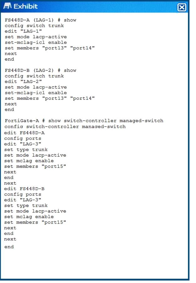 2. LAG-1 and LAG-2 should be connected to a single 4-port 802.3ad interface on the FortiGate-A.