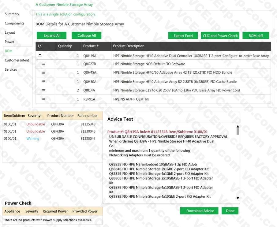 You are validating a Nimble HF40 configuration created in OCA, and you receive an error when you run a CLIC check.