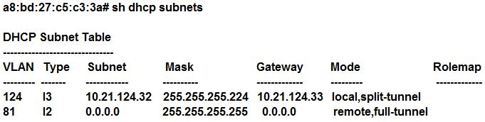 Based on the output shown in the exhibit, which IAP-VPN DHCP modes are being used?