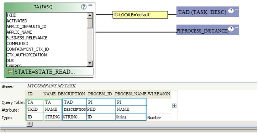 4. The query table definition file that is installed with the product needs to be customized by using predefined tables in the Business Process Choreographer database schema.