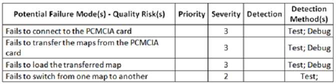 The following is the unique “critical” quality risk item that has been identified: