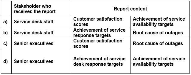Which is the BEST combination of report content and target stakeholder?
