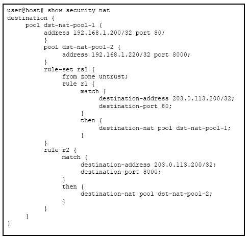 Which feature is enabled with destination NAT as shown in the exhibit?