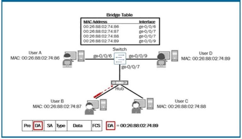 Referring to the exhibit, which devices will receive the packet sent by User B?