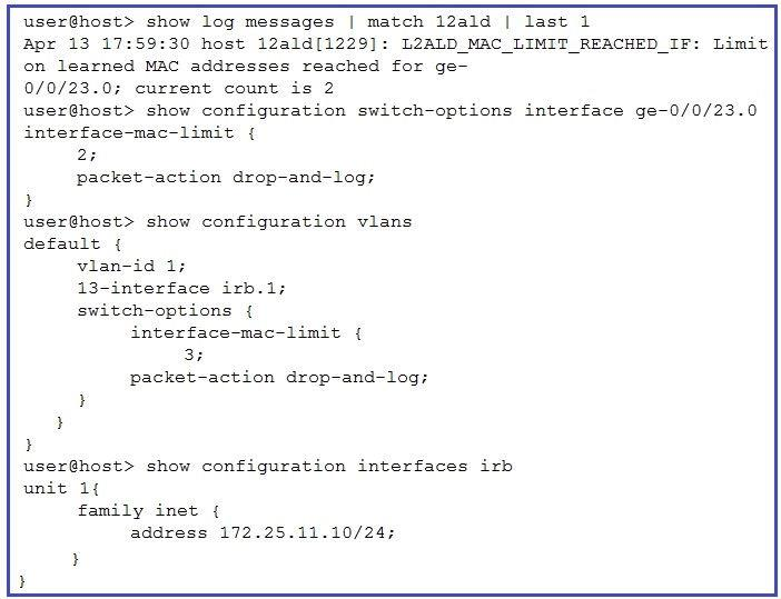 1. set vlans default switch-options interface-mac-limit 4
