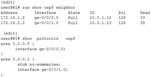 1. Router R1 must be configured as a stub area for Area 0.0.0.0.